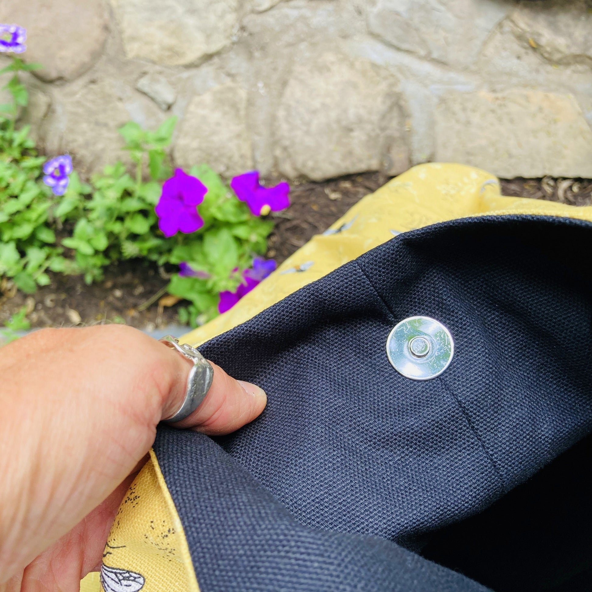All bags have a magnetic snap closure and both the outside and lining fabric are made from durable lightweight canvas. The wide strap is durable but soft so that it won't dig into your shoulder and the edges are all double stitched for extra strength.