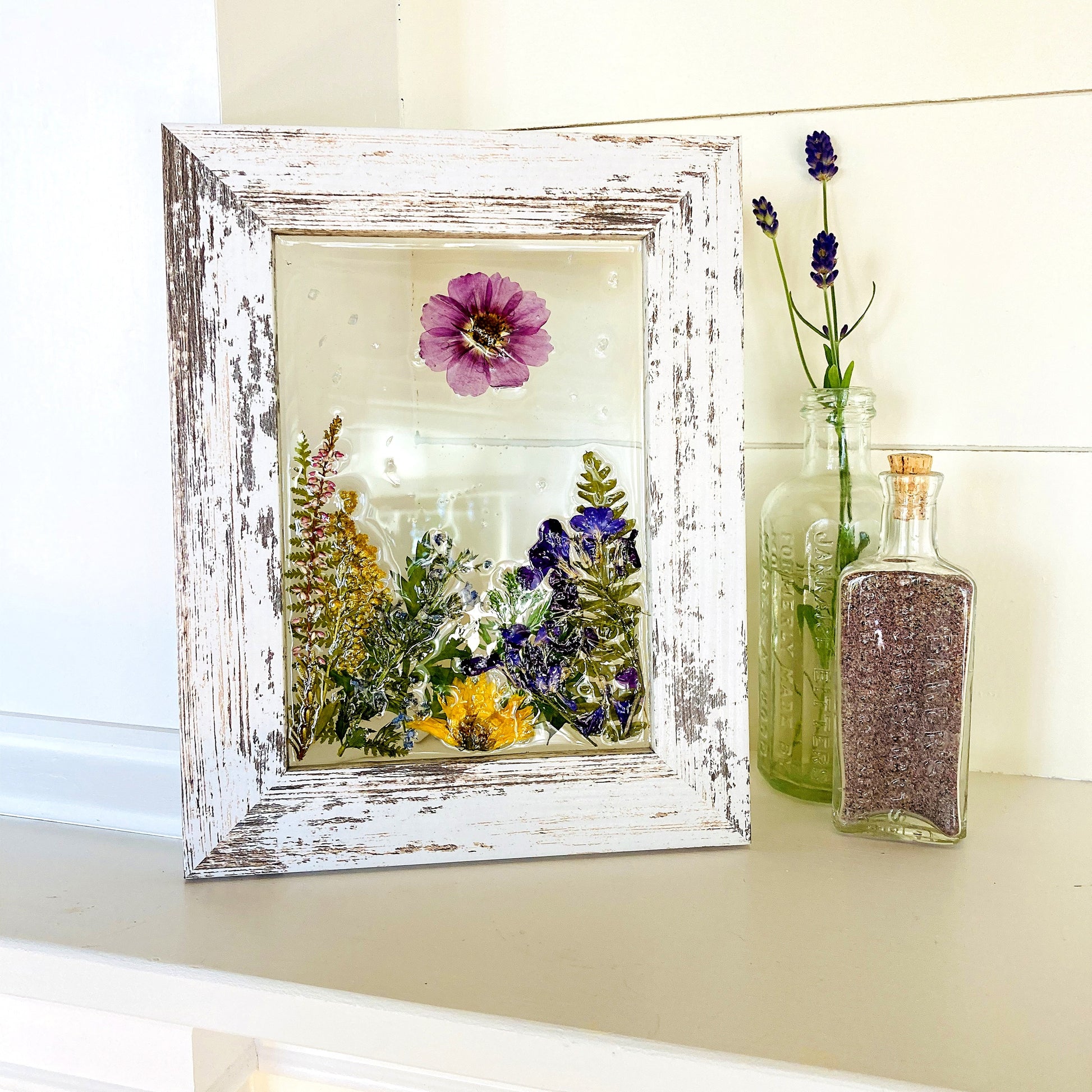 We only create a few replicas of each of our flower frames and no two are exactly alike. Please view full details on our flower frames HERE before making your purchase. Frames come pre-hung. Size: 9" x 7"