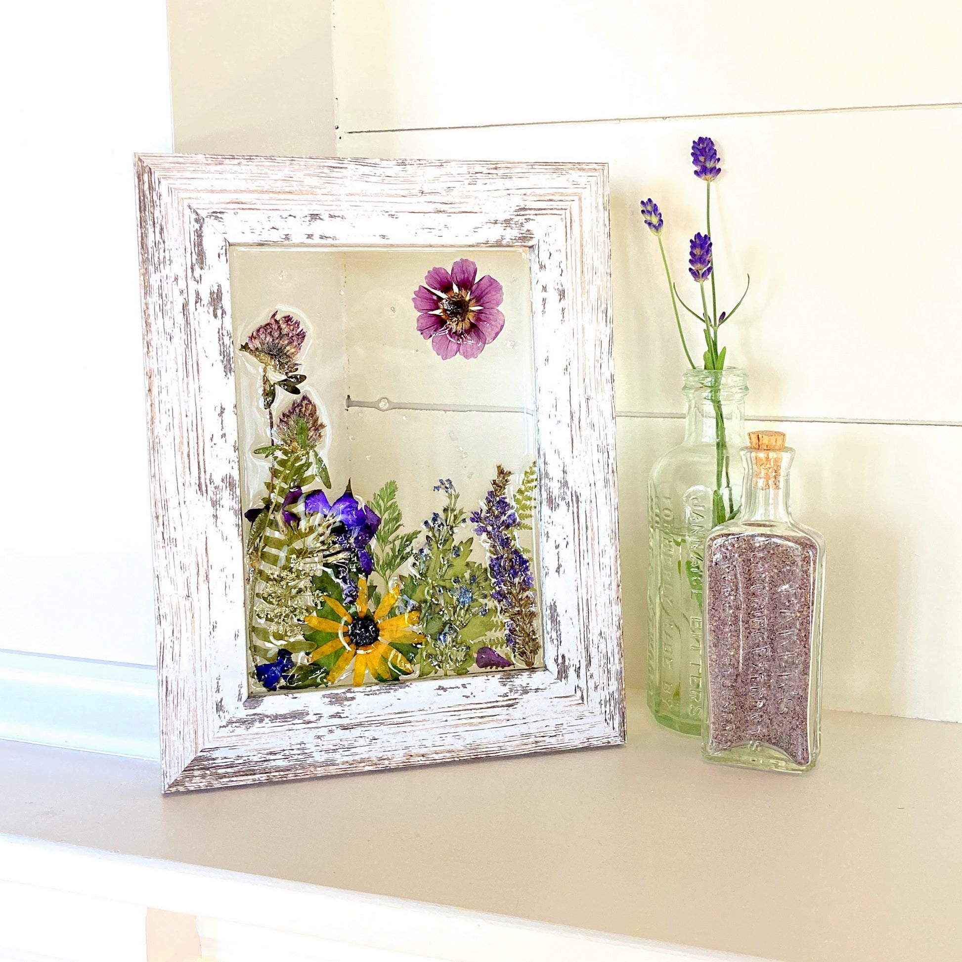 We only create a few replicas of each of our flower frames and no two are exactly alike. Please view full details on our flower frames HERE before making your purchase. Frames come pre-hung. Size: 9" x 7"